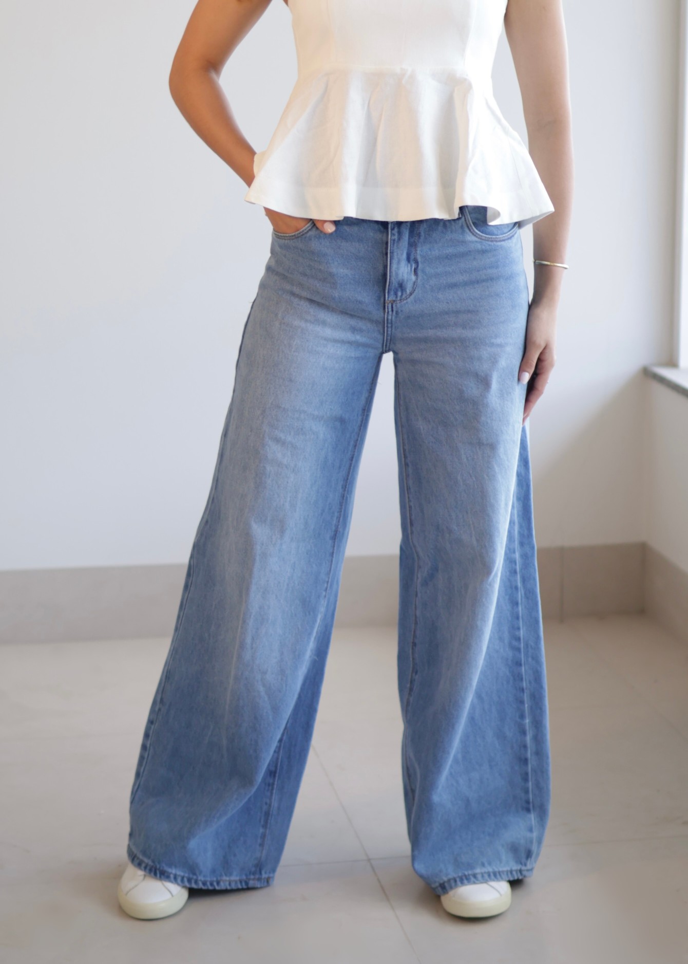 Com modelagem wide leg, cintura alta e acabamento refinado, a peça alonga a silhueta e confere elegância instantânea a qualquer produção. O azul clássico do denim traz versatilidade, permitindo combinações que vão do casual chic ao urbano sofisticado.
