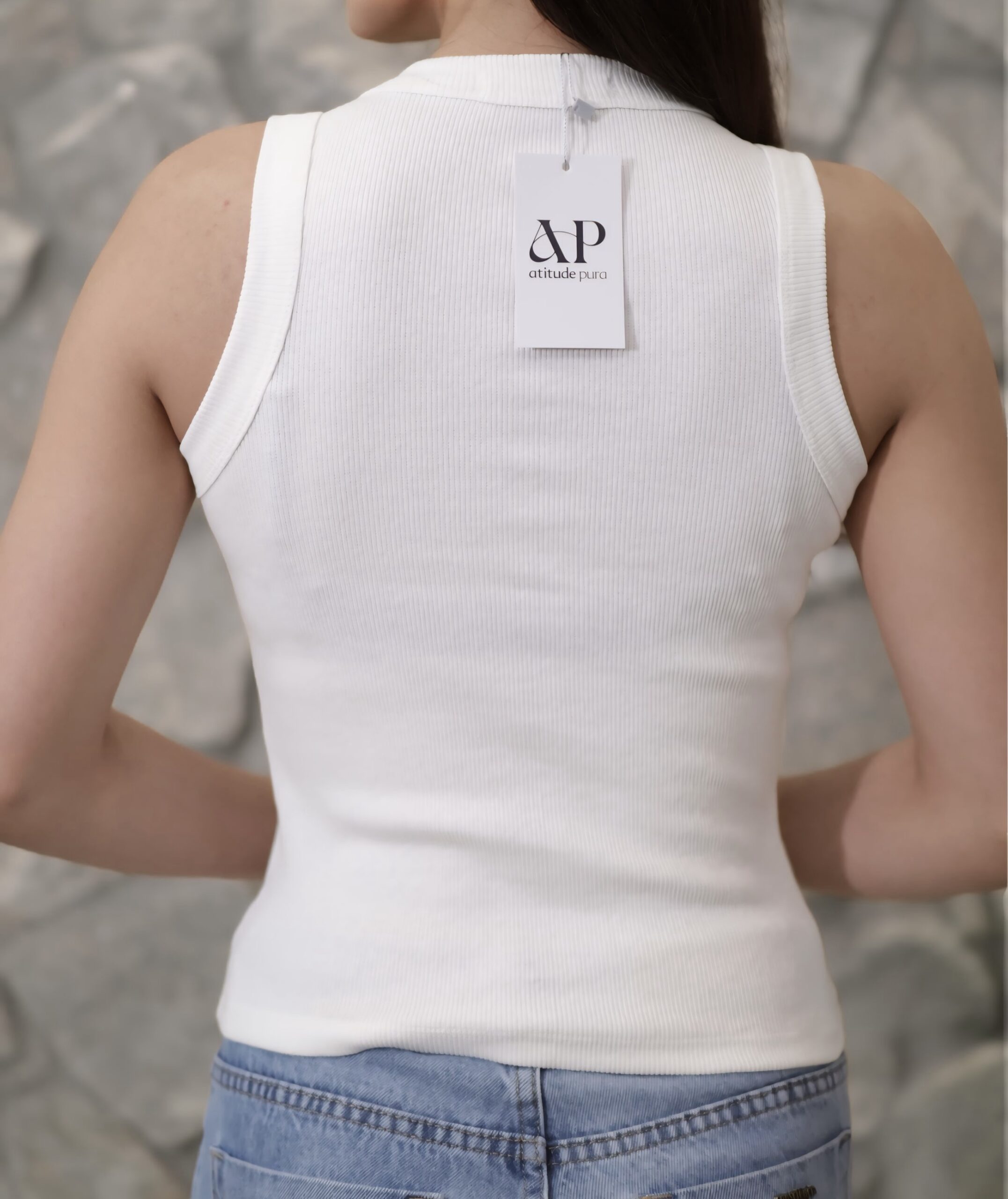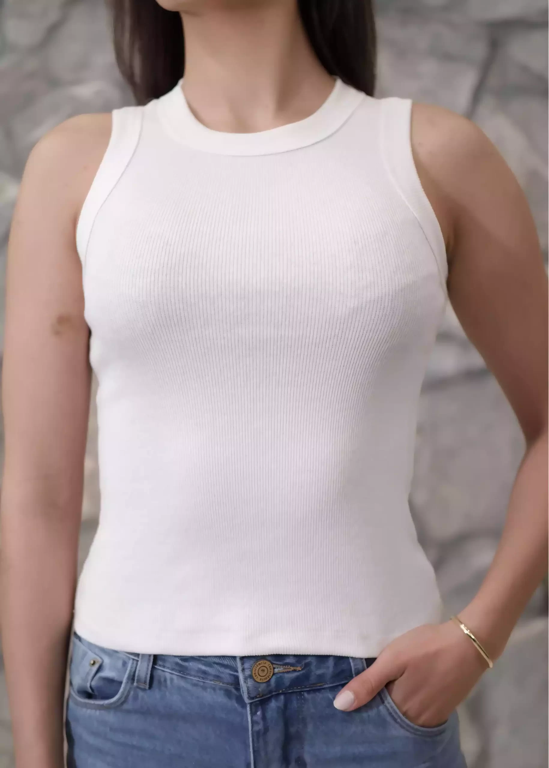 Minimalista, moderna e atemporal — a Regata Lin é o essencial chique que toda mulher precisa no guarda-roupa.